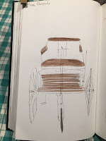 Na 4ª feira fui almoçar com uma amiga e, enquanto esperava por ela, vai de sacar do caderninho e da inspiração para registar o mobiliário despretensioso na entrada do restaurante.